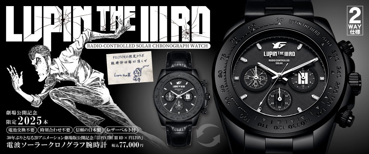 【本日公開】約30年ぶりに2Dの劇場アニメーションとして帰ってくる!『LUPIN THE IIIRD THE MOVIE 不死身の血族』コラボの【限定2025本】電波ソーラークロノグラフを発売開始!!