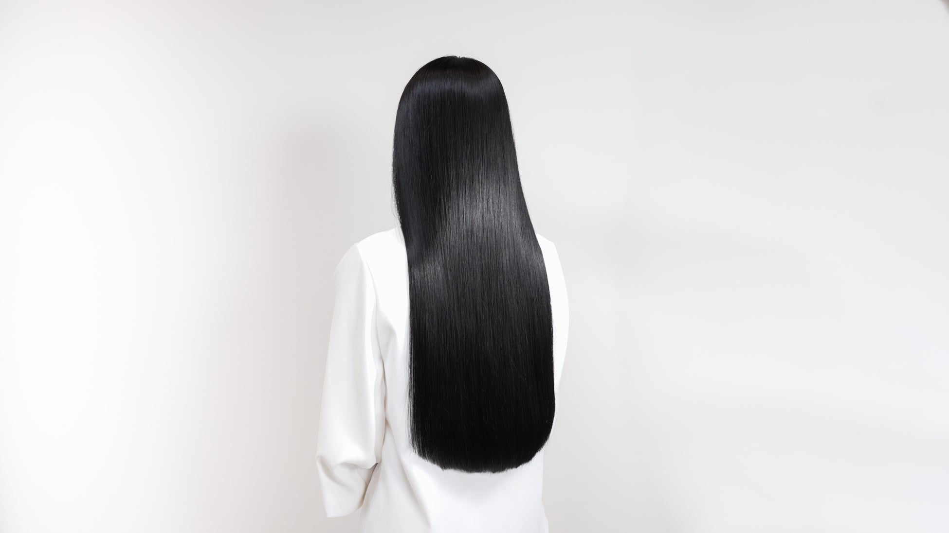 鏡のように光を均一に反射し、深みのある自然なツヤを放つ髪。