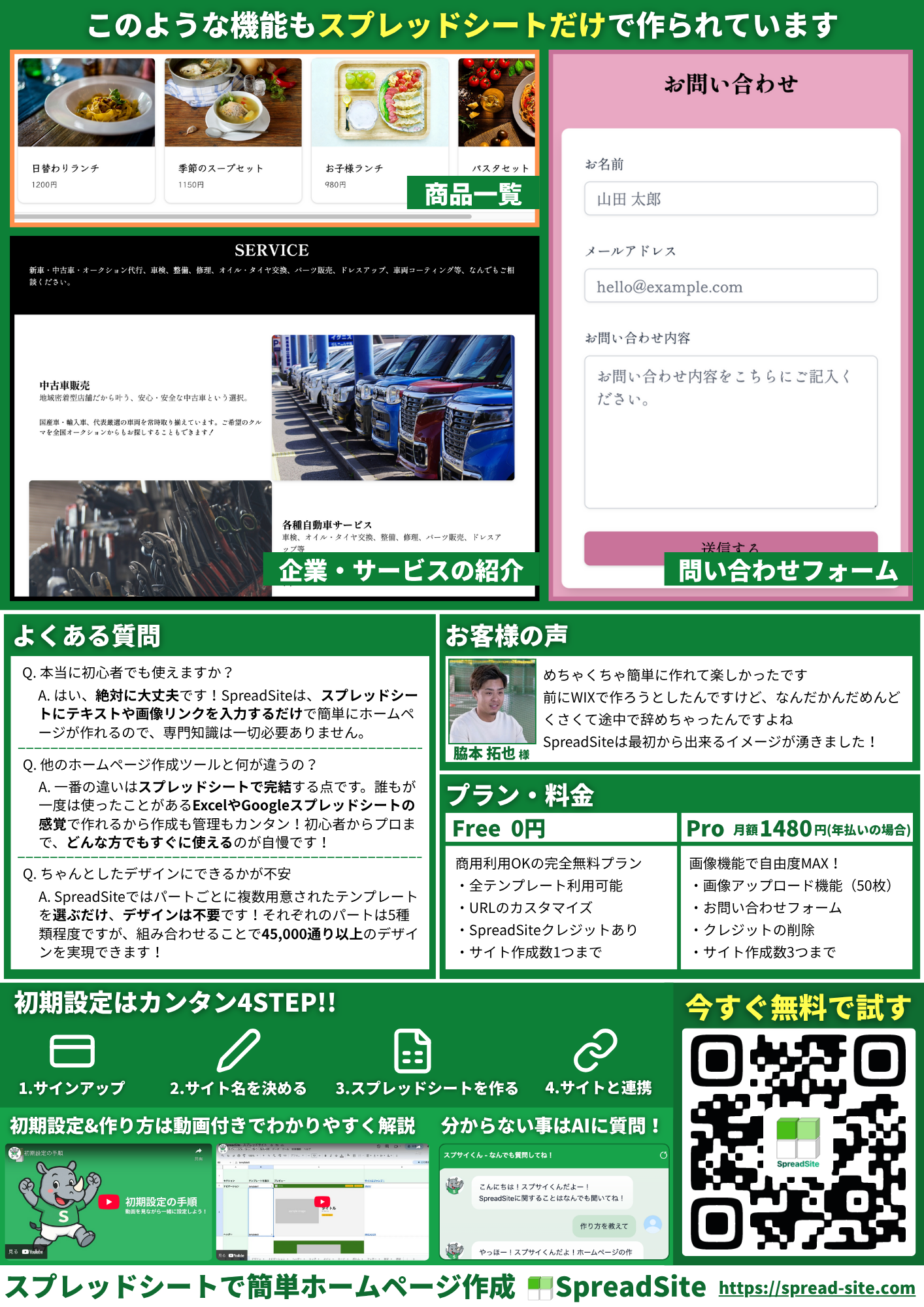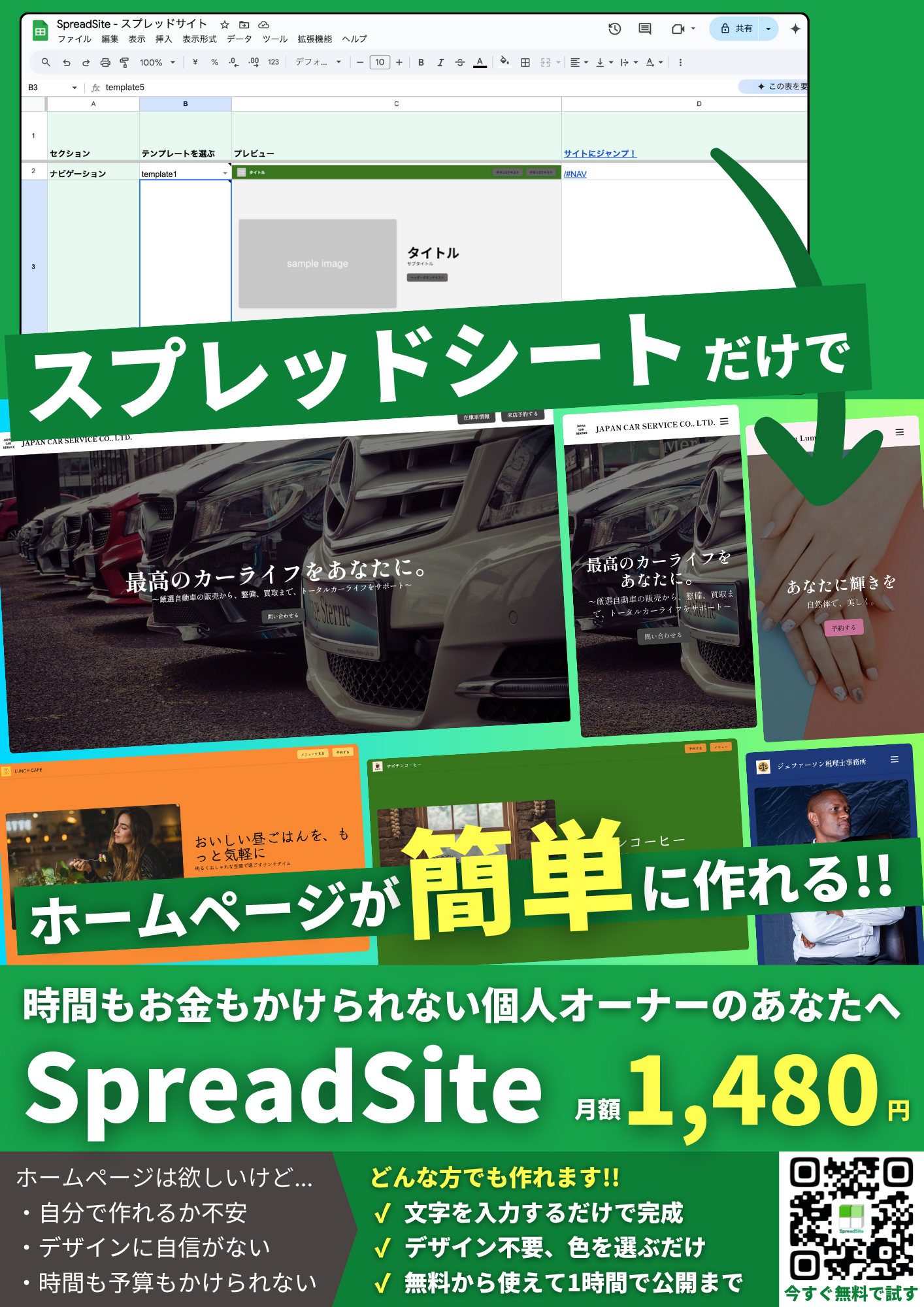 日本初、スプレッドシートだけでホームページを作成・更新できるサービス「SpreadSite」が7月11日より正式リリース