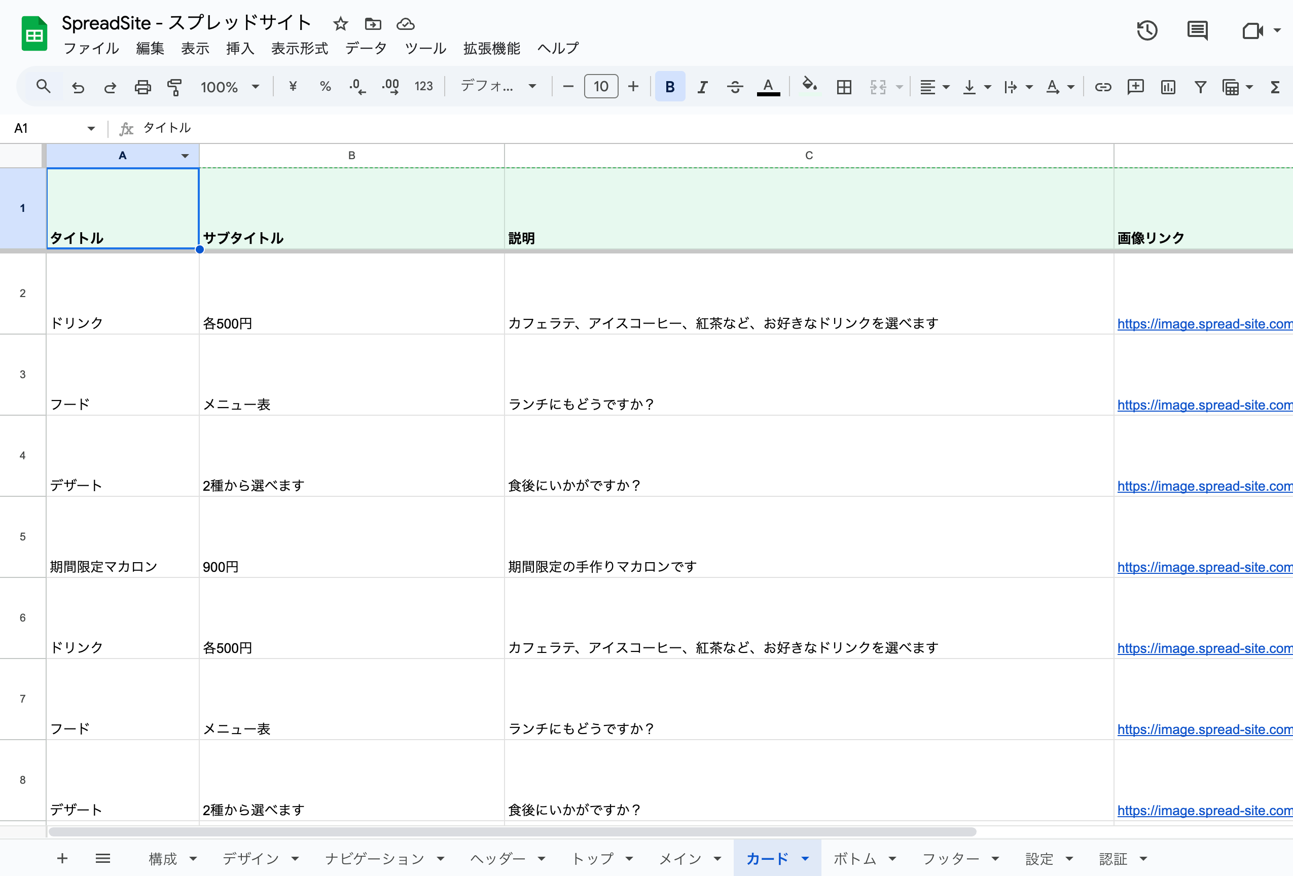 A. 最も大きな違いは、Webサイトの作成から更新まで、すべての作業がスプレッドシートのみで完結する点です。独自の管理画面の操作を覚える必要がなく、多くの方が使い慣れた表計算ソフトの感覚で、どなたでも直感的にサイトを管理・運用いただけます。