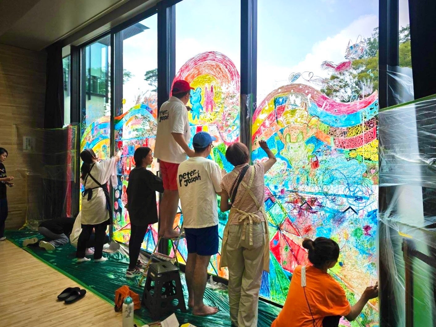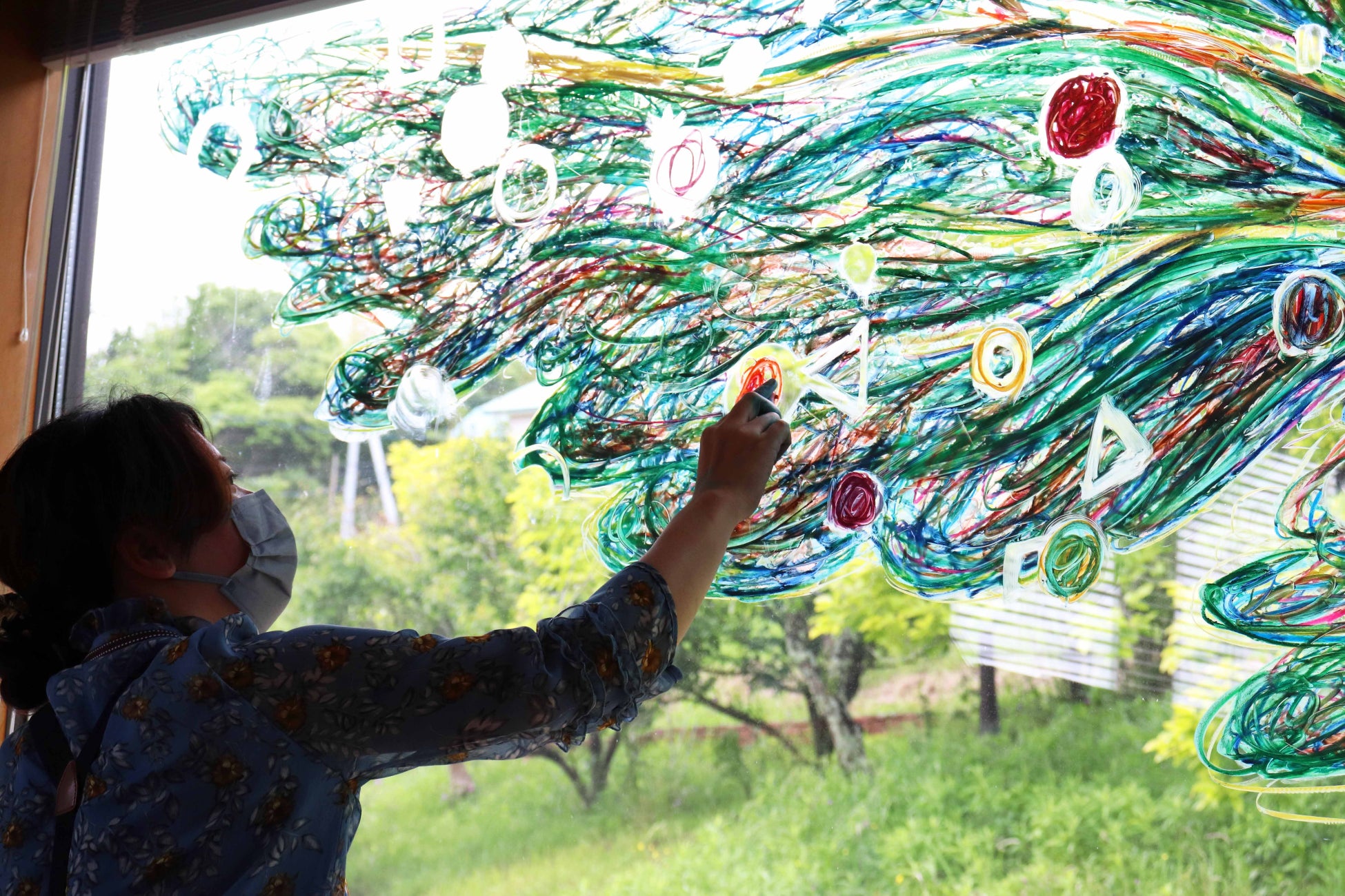 発売以降は、キットパスの安全性から小さなお子さまから学童期のお子さま向けの画材として親しまれてきましたが、現在はプロのアーティストが指名買いをしてウィンドウアートに活用いただくなど国内外でのアート制作に数多く使用されています。