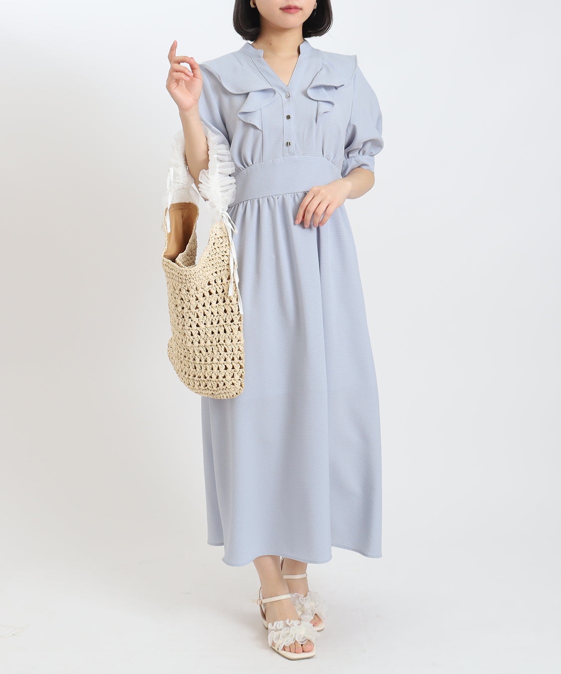 商品名:スキッパーラッフルサッカーワンピース