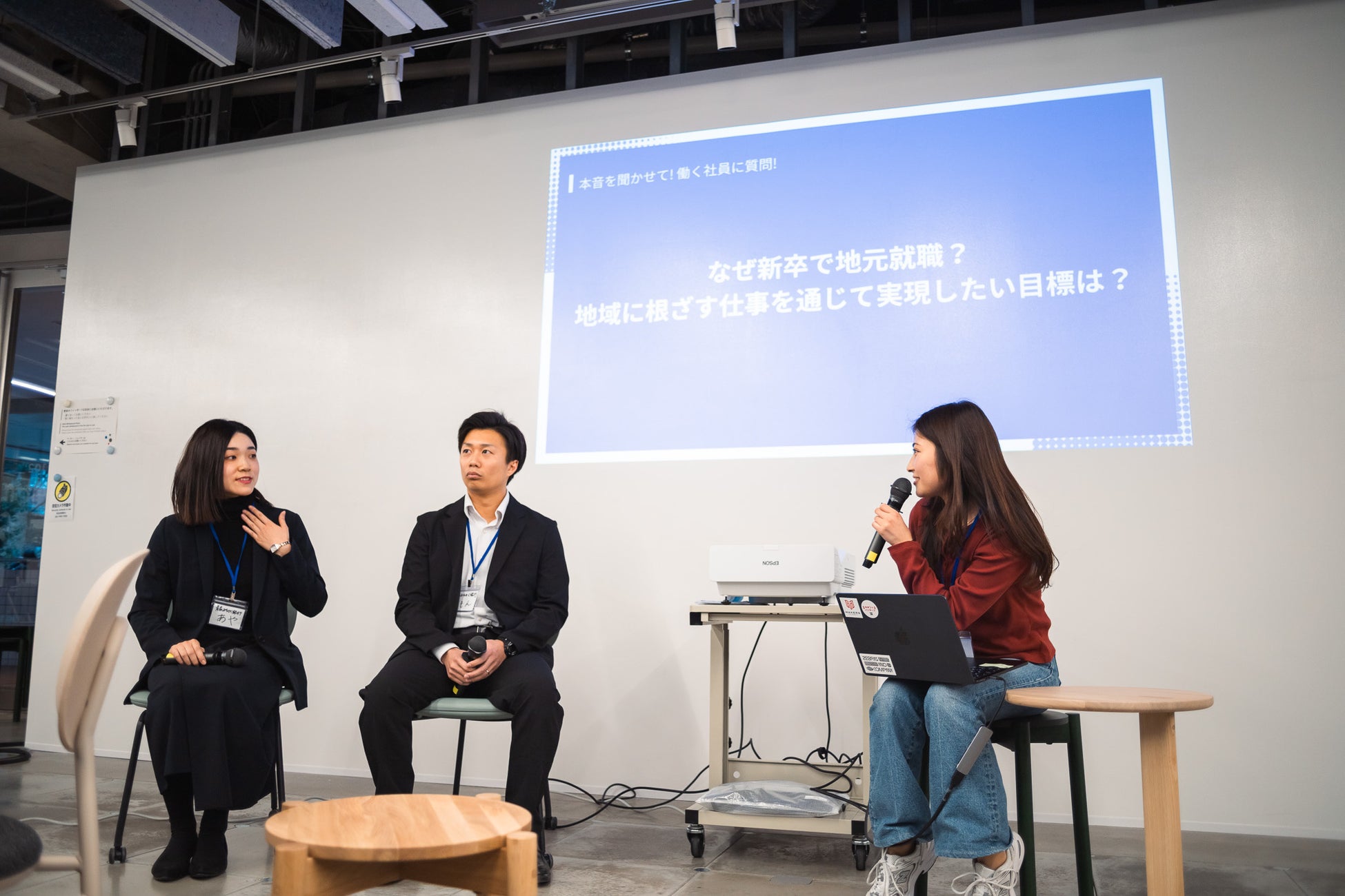 地域キャリア思考が高い大学生30名以上が集まり、地元で挑戦する企業の想いに耳を傾けたり、実際にUターンした若手社員にリアルな質問や悩みを投げかけたりしました。