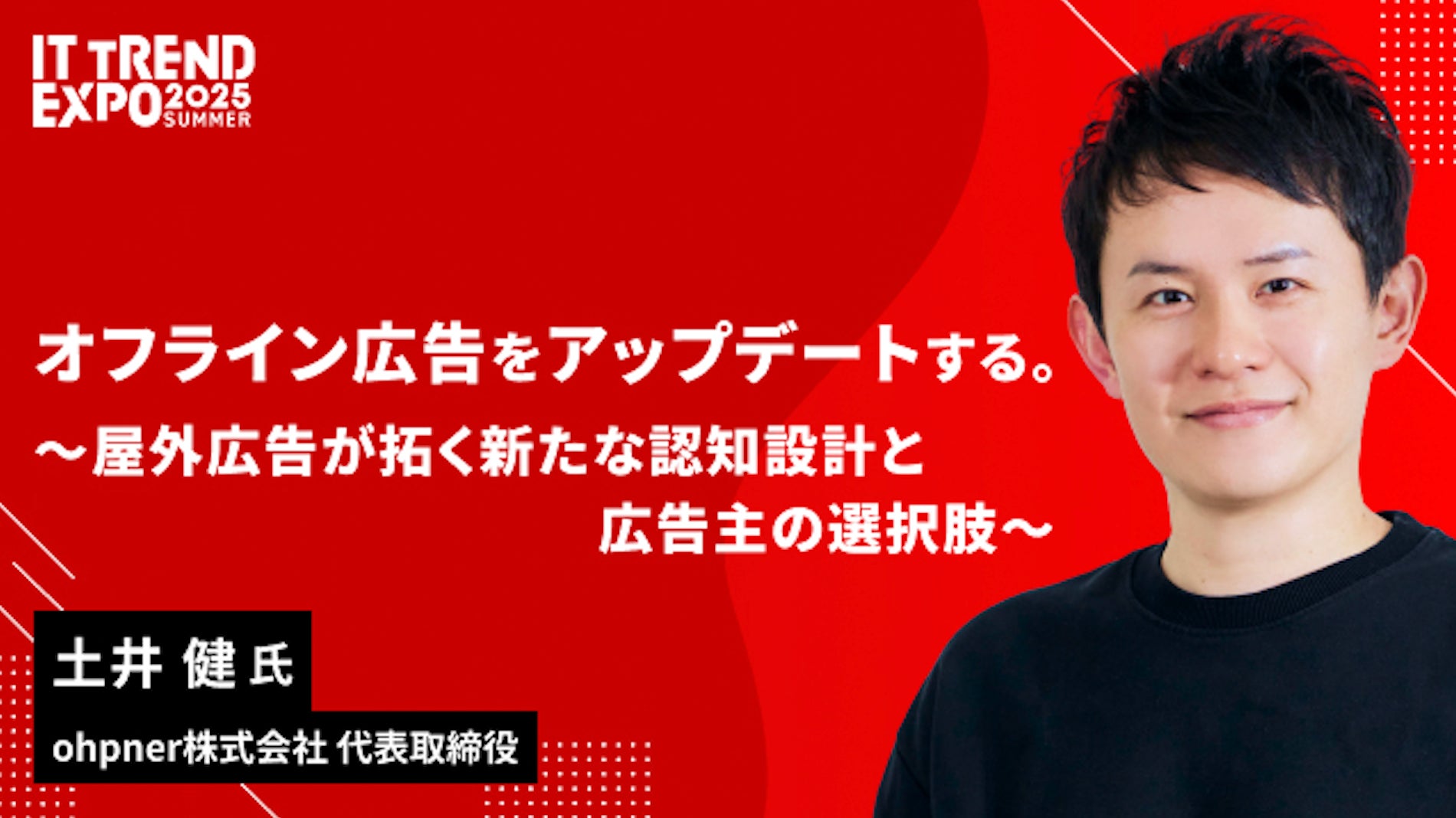 オフラインマーケティング事業を展開するohpner株式会社(東京都渋谷区、代表取締役:土井健)の代表・土井が、2025年9月2日(火)~ 9月5日(金)に開催される、業界最大級のオンライン展示会「ITトレンドEXPO2025 Summer」に登壇します。