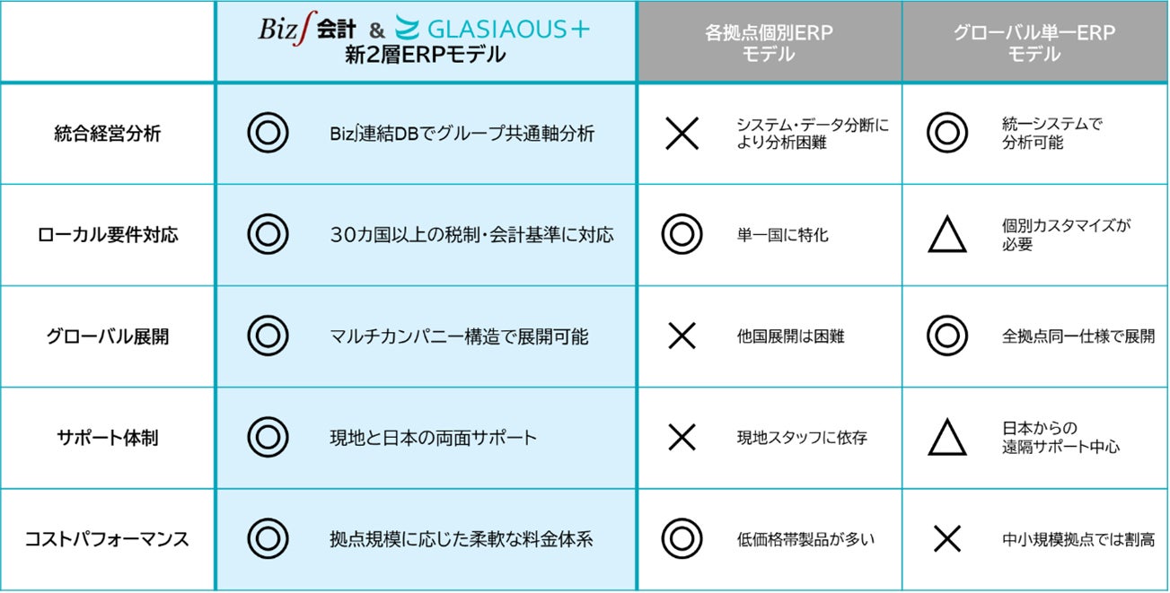 【解決策:Biz∫とGLASIAOUS+の連携による新2層ERPモデル】