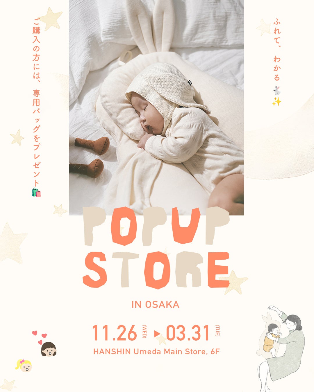 阪神梅田本店にて「ララスベビー枕」POP UP開催中、好評につき2026年3月31日まで会期延長