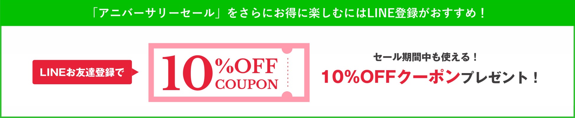 お友達登録でGETしたクーポンは、このセール期間もご使用になれます。セールの20%OFFと合わせて使えるので、さらにお得にお買い物ができます。