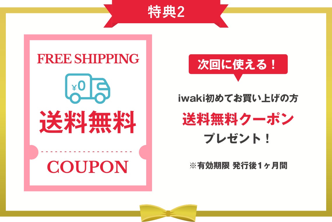 初めてお買い物された方には、次回使える送料無料クーポンをプレゼント。