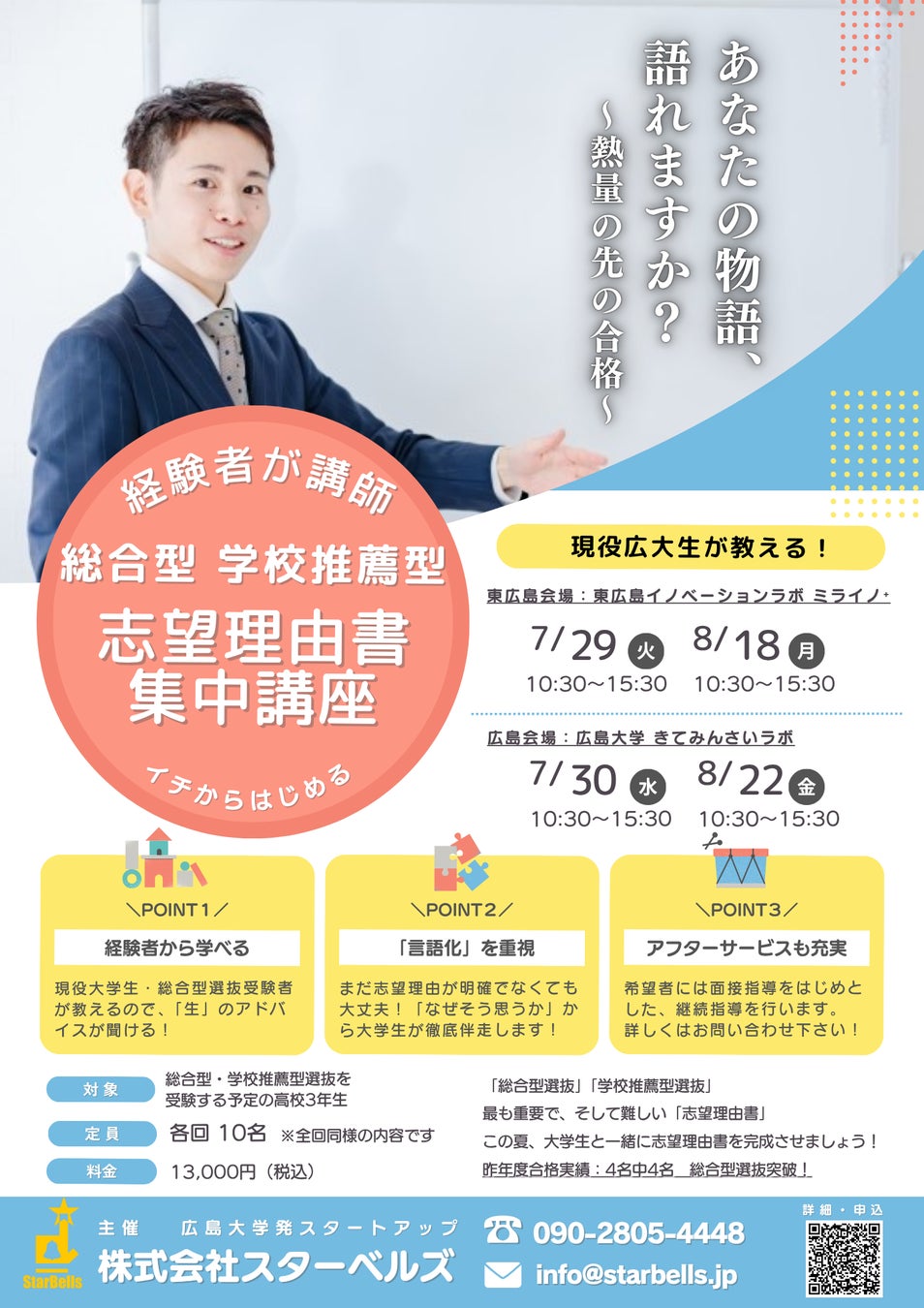 株式会社スターベルズ(広島県東広島市、代表取締役:井上遊星)が運営する、オンライン進路サポート塾『COMPASS』では 専属の現役大学生講師が高校生を個別にサポートし、大学入試という大きな意思決定に後悔がないように徹底してサポートします!