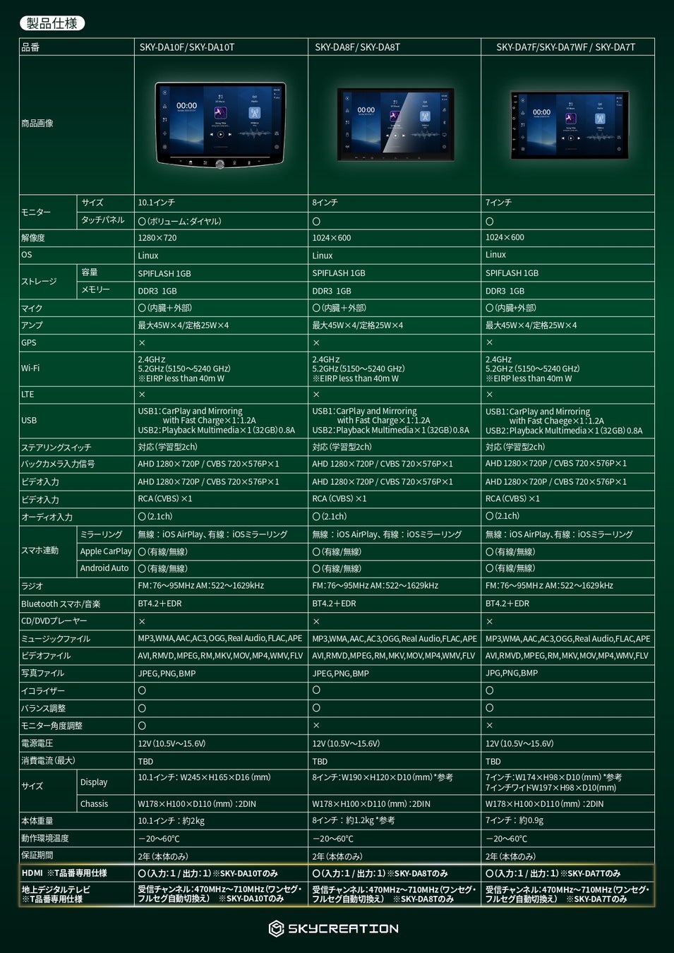自動車用品の製造、販売を手掛ける日本メーカー 株式会社SKYcreation(本社:東京都町田市、代表取締役社長:坂田剛)は、ディスプレイオーディオにテレビチューナー、HDMI入力/出力機能が標準搭載となったLYNX(リンクス) Tシリーズの発売を発表しました。
