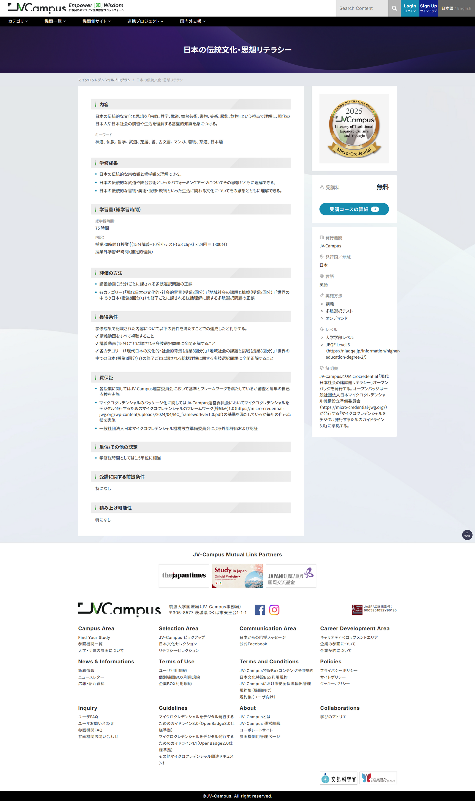 二つ目は、日本文化および現代リテラシーに関するオンラインプログラムの開始と、(一社)日本マイクロクレデンシャル機構のガイドラインに準拠したマイクロクレデンシャルの発行です。