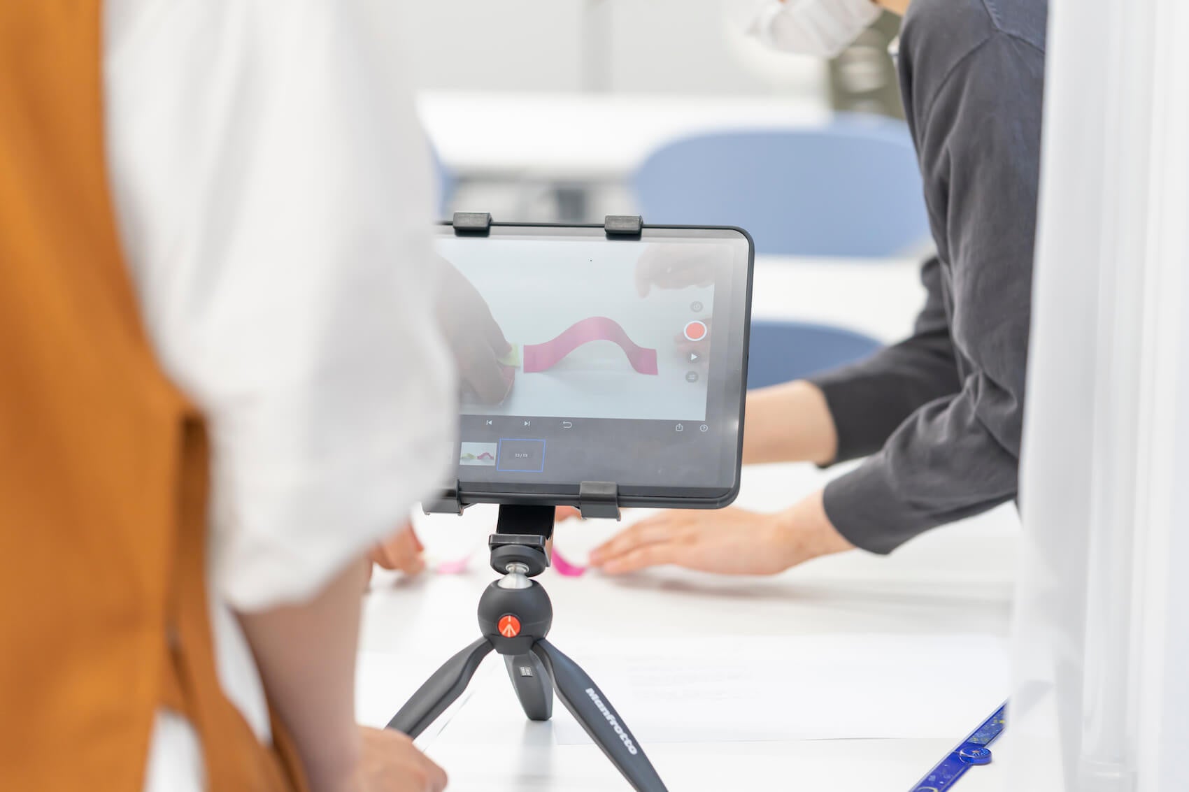 映像と音響をテーマとし、レクチャー (事例・視点の共有) と実習(企画・制作による理解)で構成された授業で、ユーザー体験の企画・制作にむけたメディアの利活用のかたちを探求します。 メディア (映像+ 音響) とユーザーの身体の間で体験が生まれる瞬間に立ち会うおもしろさは、手を動かしながら学ぶ〈桑沢〉ならではの授業です。