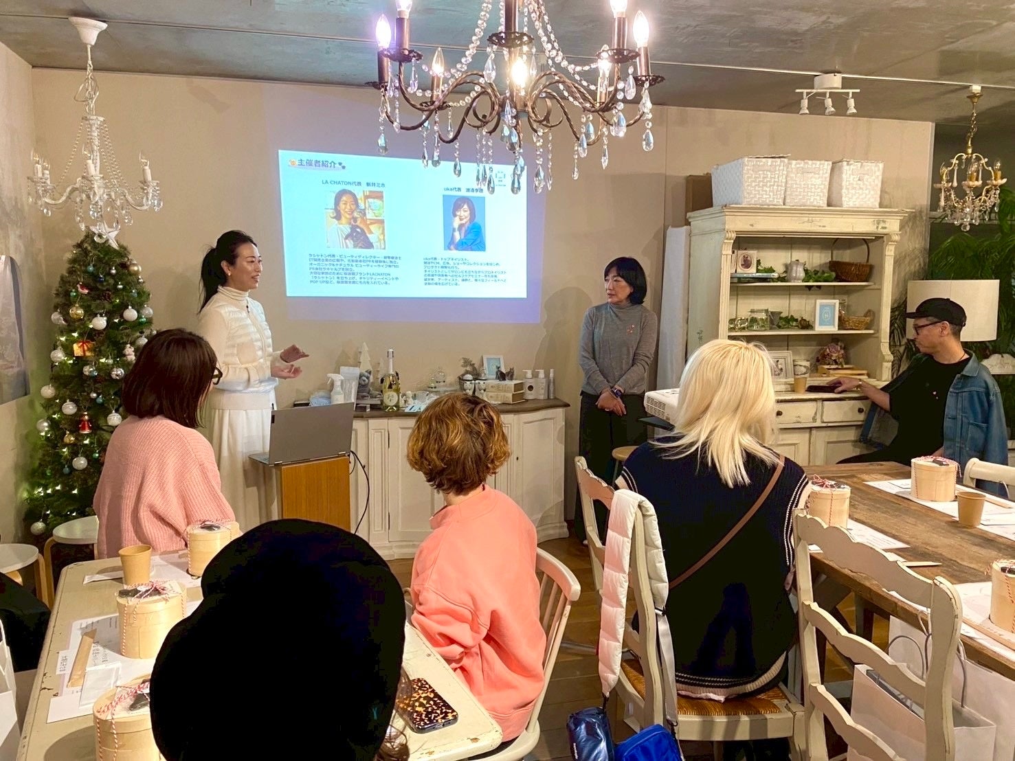 当日は16名の愛猫・愛犬家たちが参加し、ukafe特製のお弁当を食べながら、2026年の開運をテーマにしたエディターの青木良文氏の話に熱心に耳を傾けメモを取る姿や、愛猫・愛犬のスライドを紹介する楽しい企画に思わず皆が笑顔になる場面もございました。