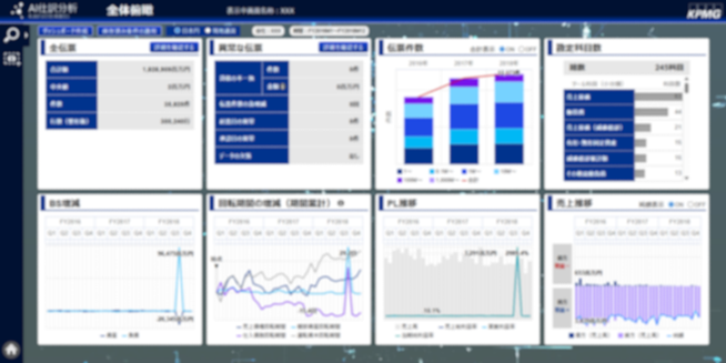 AI仕訳分析ツールは、「これまでのグループ管理に変革を」をミッションに掲げ、従来は困難であった大容量の仕訳データ分析を、簡単なクリック操作のみで実現する、KPMGジャパンが開発・提供するSaaS型分析ツールです。事業部・子会社管理、経理モニタリング、内部監査などの高度化・効率化を支援します。