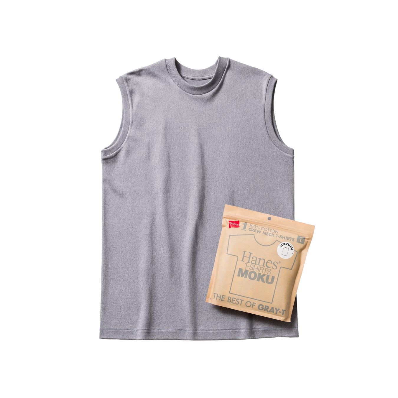 「Hanes T-SHIRTS MOKU」 のカラー展開は杢グレー1色のみ、ラインナップにはショートスリーブタイプとスリーブレスタイプが揃います。
