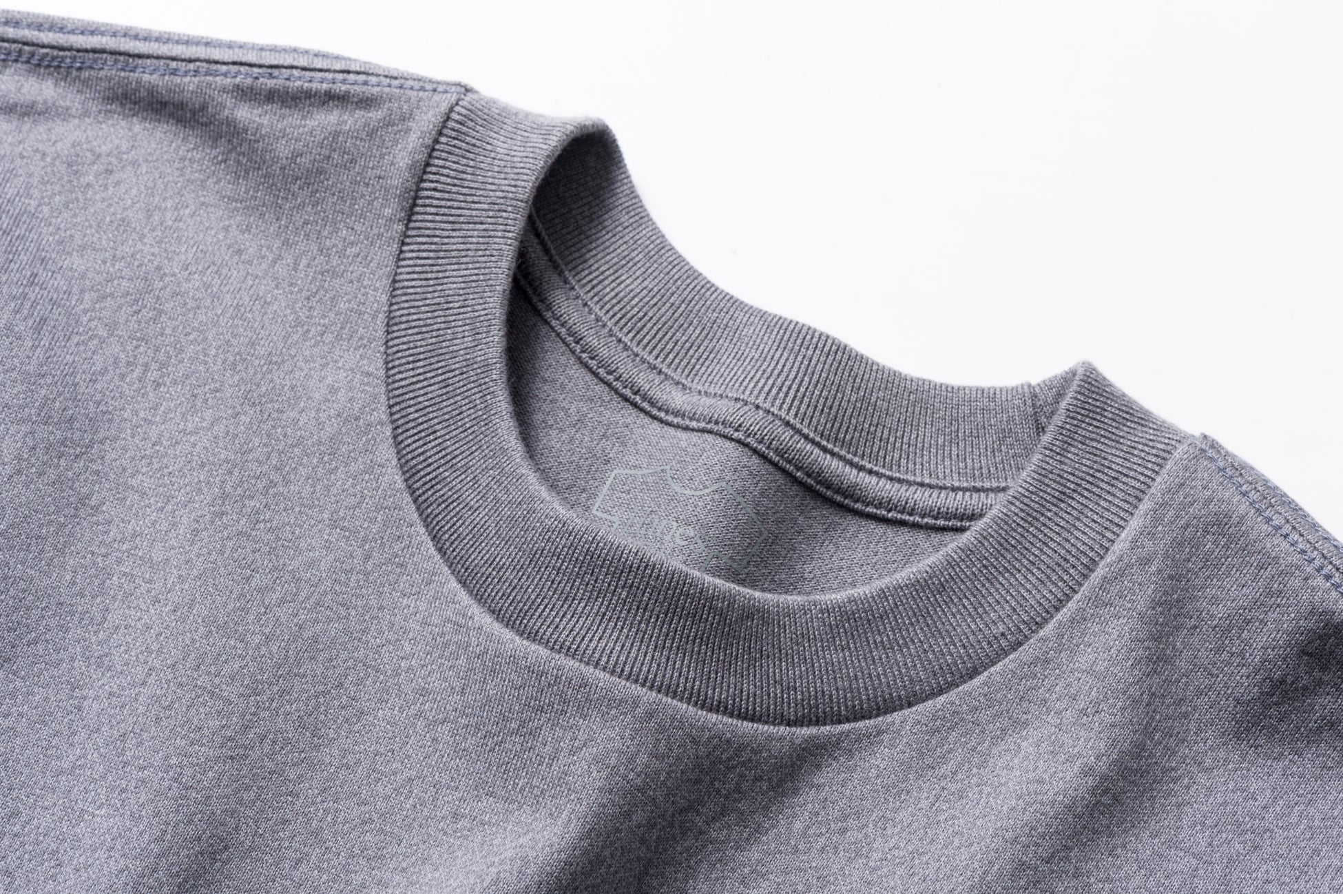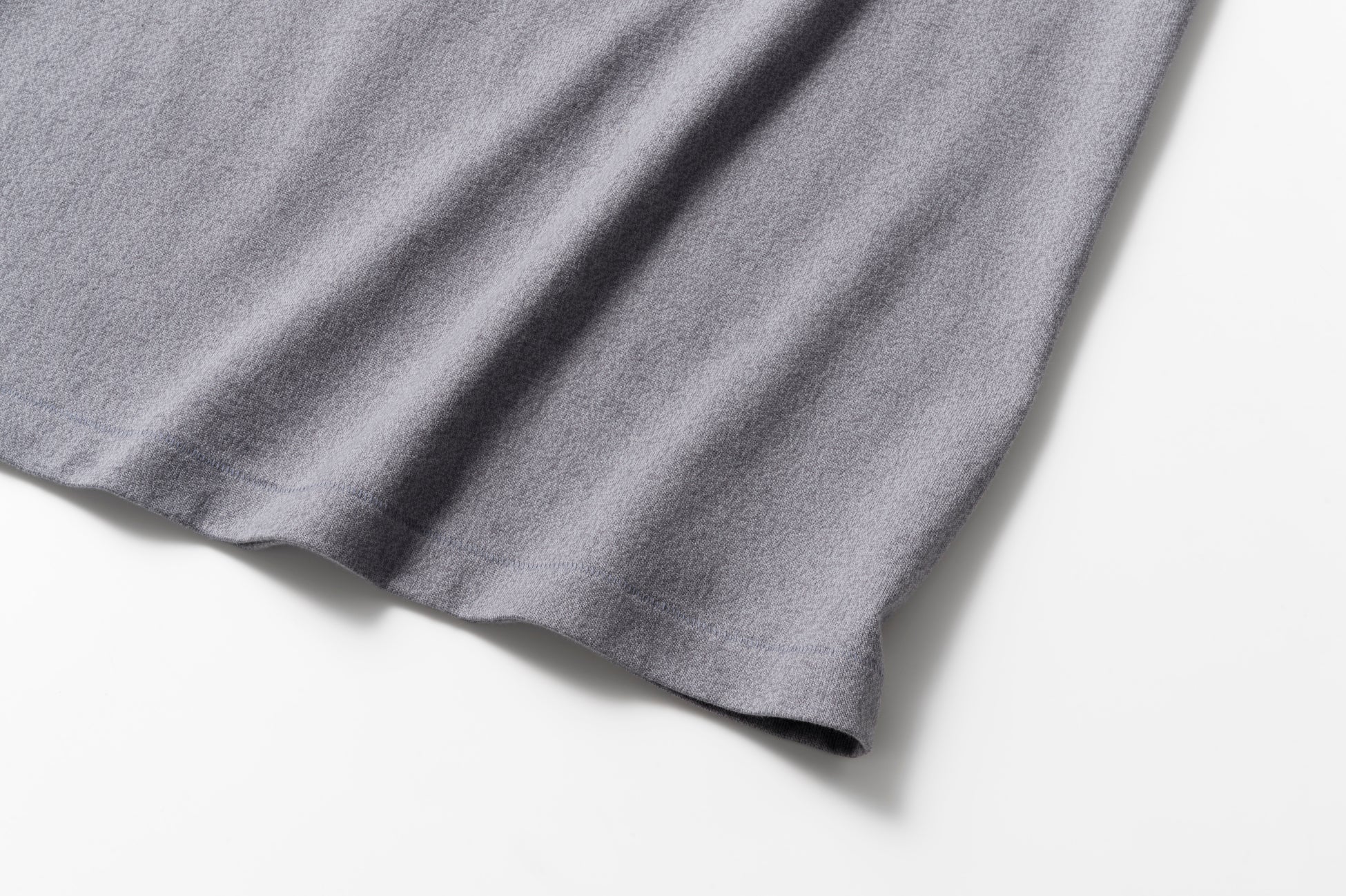 さらに2種類の先染め糸の一部に独自の特殊加工を施し、綿100%の吸水性は担保しながら、水分の吸収率を半減させて水分を生地上で拡散させることで、夏でも汗染みの目立ちにくい*グレーTシャツを実現しました。
