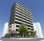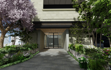 ※掲載のエントランスラウンジ完成予想CGは図面を基に描き起こしたもので、形状・色等は実際とは見え方が異なることや変更する場合があります。なお、外観形状の細部、設備機器等は表現しておりません。また敷地内のみ表現しております。