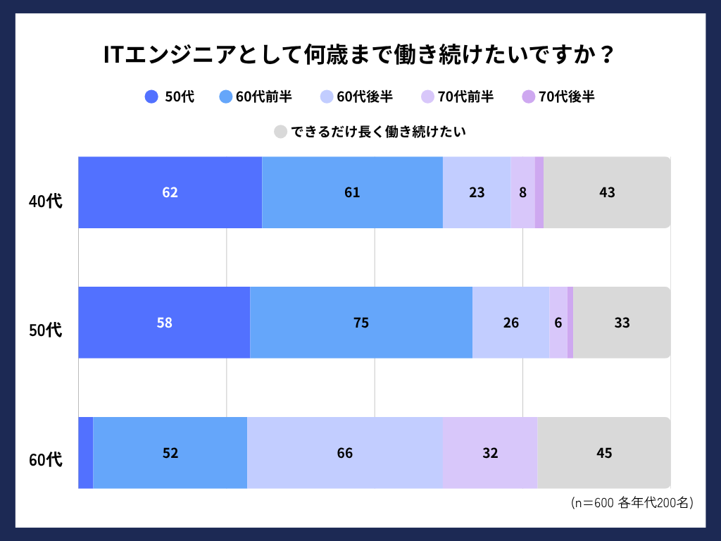 調査対象:40代〜60代のITエンジニア600人(40代・50代・60代各200人)