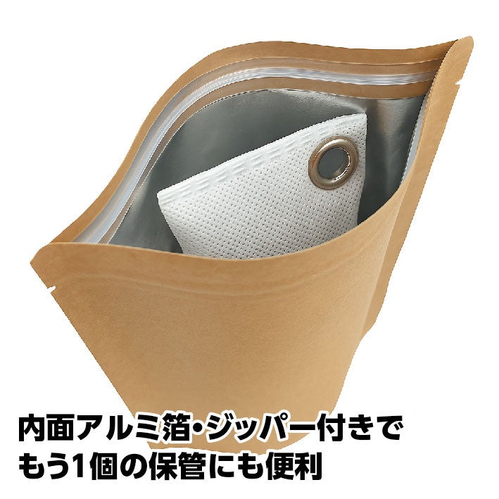 また、余った個数はアルミ箔・ジッパー付きパッケージで保管できる。