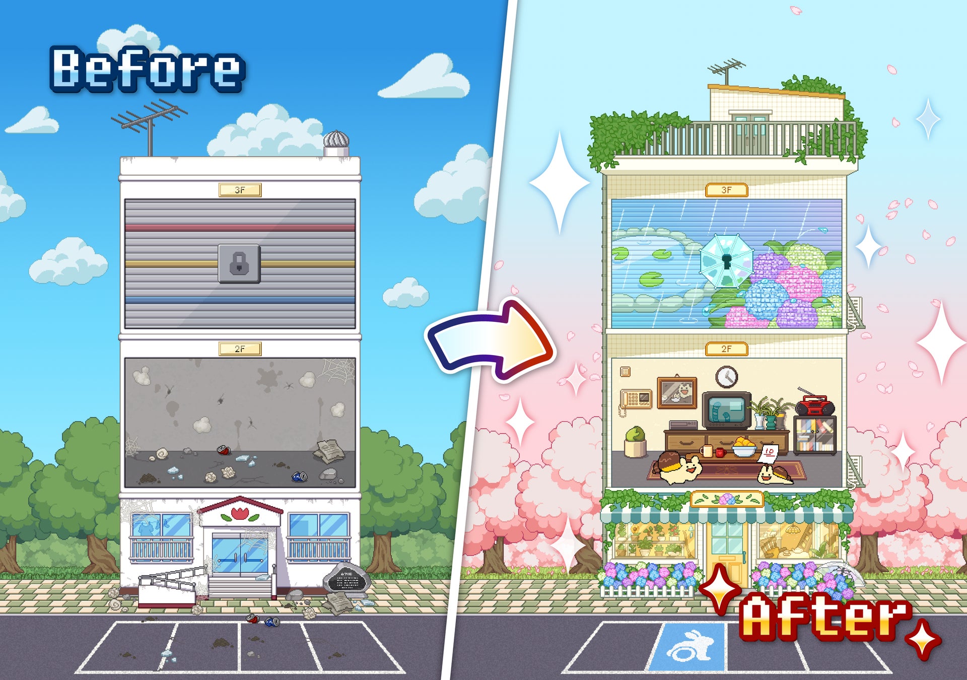 誕生したアイテムを使って部屋を掃除したり飾り付けたりしながら、マンション全体を少しずつ整えていくことができます。
