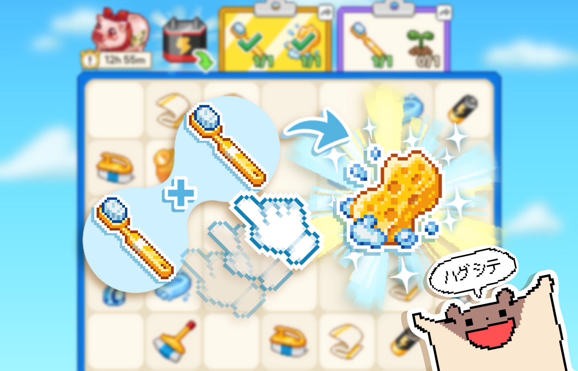 本作の最大の特徴は、“そっくりなアイテム同士をハグさせる”ことで新たなアイテムが誕生する「ハグ」システムです。