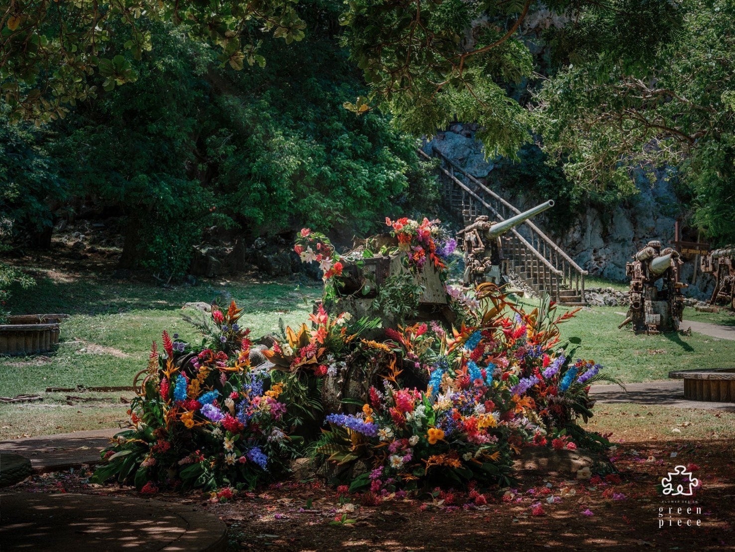 「花ひらく わたしひらく 世界ひらく」を理念に花や植物に関連したディスプレイ制作やイベント開催、スクールの運営を行う株式会社greenpiece(本社:秋田県秋田市、代表取締役CEO:金森弘至)は、戦後80年となる本年8月に、第二次世界大戦の激戦地となったサイパン ラスト・コマンド・ポストにおいて、マリアナ州政府の協力のもと、現地に残る旧日本軍の戦車に花を手向け、命に祈りを捧げるアートワークプロジェクト 『memento mori project in Saipan』 を開催いたしました。