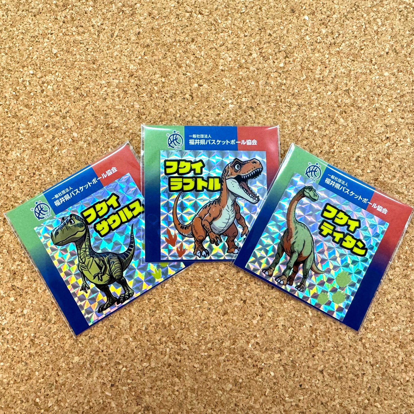 福井県バスケ協会主催「みんなでバスケ!キッズフェス」(2025年8月)では、お子様を対象に防水うちわと、福井と言えばの恐竜キラキャラステッカーを無料配布。
