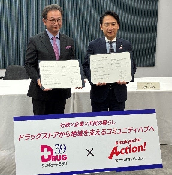 株式会社サンキュードラッグは、「より多くの人々の、より健康で、より豊かな生活の実現」を経営理念に掲げ 、高齢者の移動限界とされる「半径400~500m」を考慮し、1kmごとに店舗を構える「超高密度出店戦略」を推進してまいりました 。 現在、北九州市は政令指定都市で最も高齢化が進んでおり 、地域コミュニティの希薄化や、買い物困難者が同時に「情報難民」にもなりやすいといった課題に直面しています 。 この度、個別の活動を「点」から「面」へと広げ、行政と民間が一体となって「街の形」を変えていくために、包括連携協定を締結いたしました 。官民連携による新たな社会的価値を創出し、市民一人ひとりが健康で豊かに暮らせる「北九州モデル」の構築に取り組みます 。