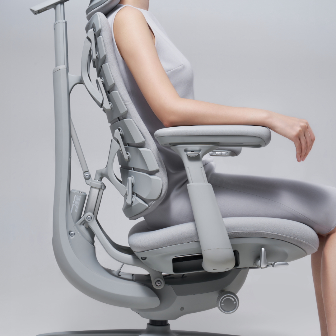 150人以上の背骨データをもとに設計されたバックレストは、8枚のフレキシブルパネルと14箇所のデュアルリンク構造、16個のポールジョイントにより、一人ひとりの背骨カーブにしなやかにフィットします。まるでオーダーメイドのようなフィット感と座り心地を実現しました。