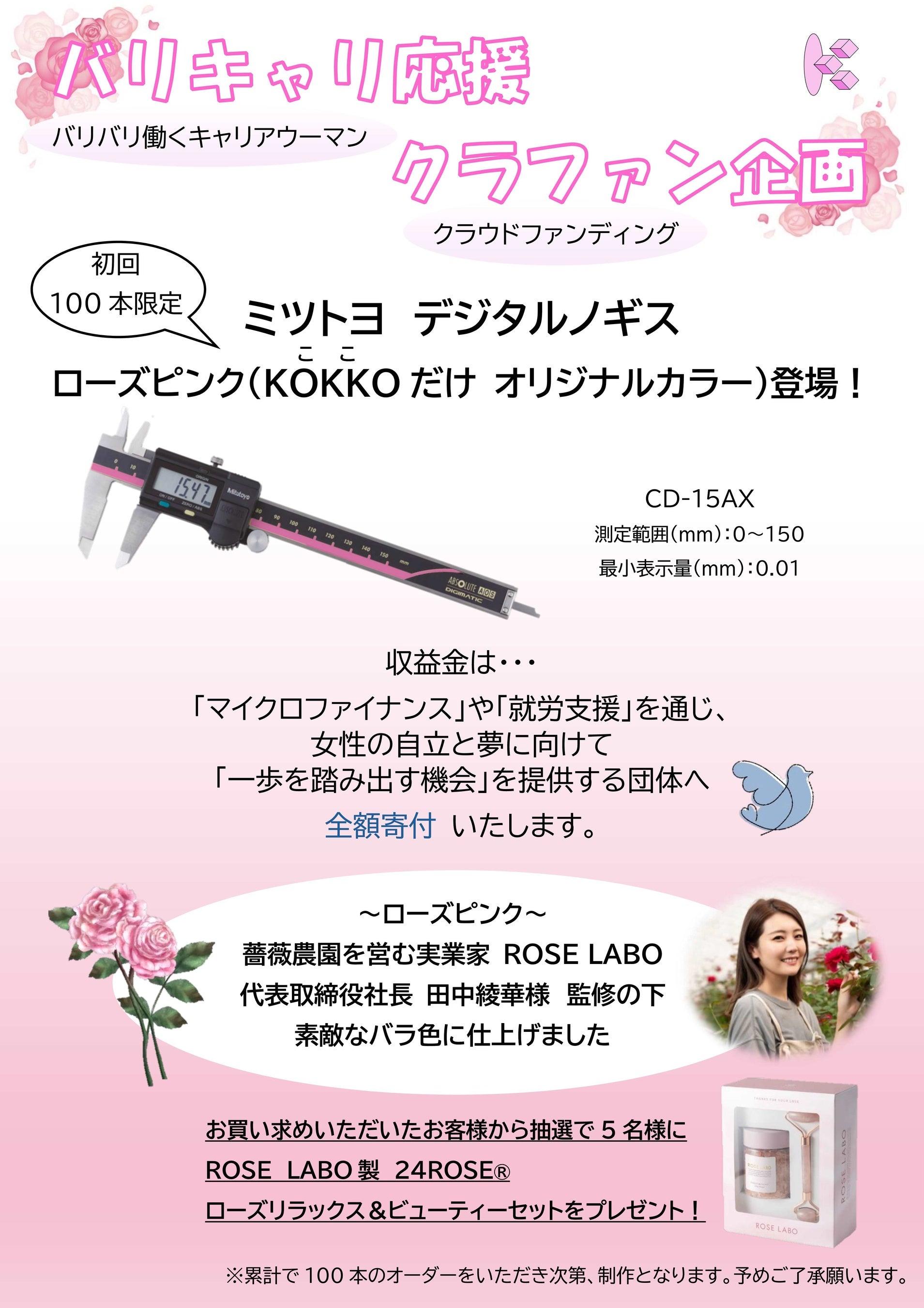 『バリキャリ応援』【初回100本限定】ミツトヨ デジタルノギス 国興オリジナルカラー ROSE LABO 代表取締役社長 田中綾華様 監修 「ローズピンク」登場!