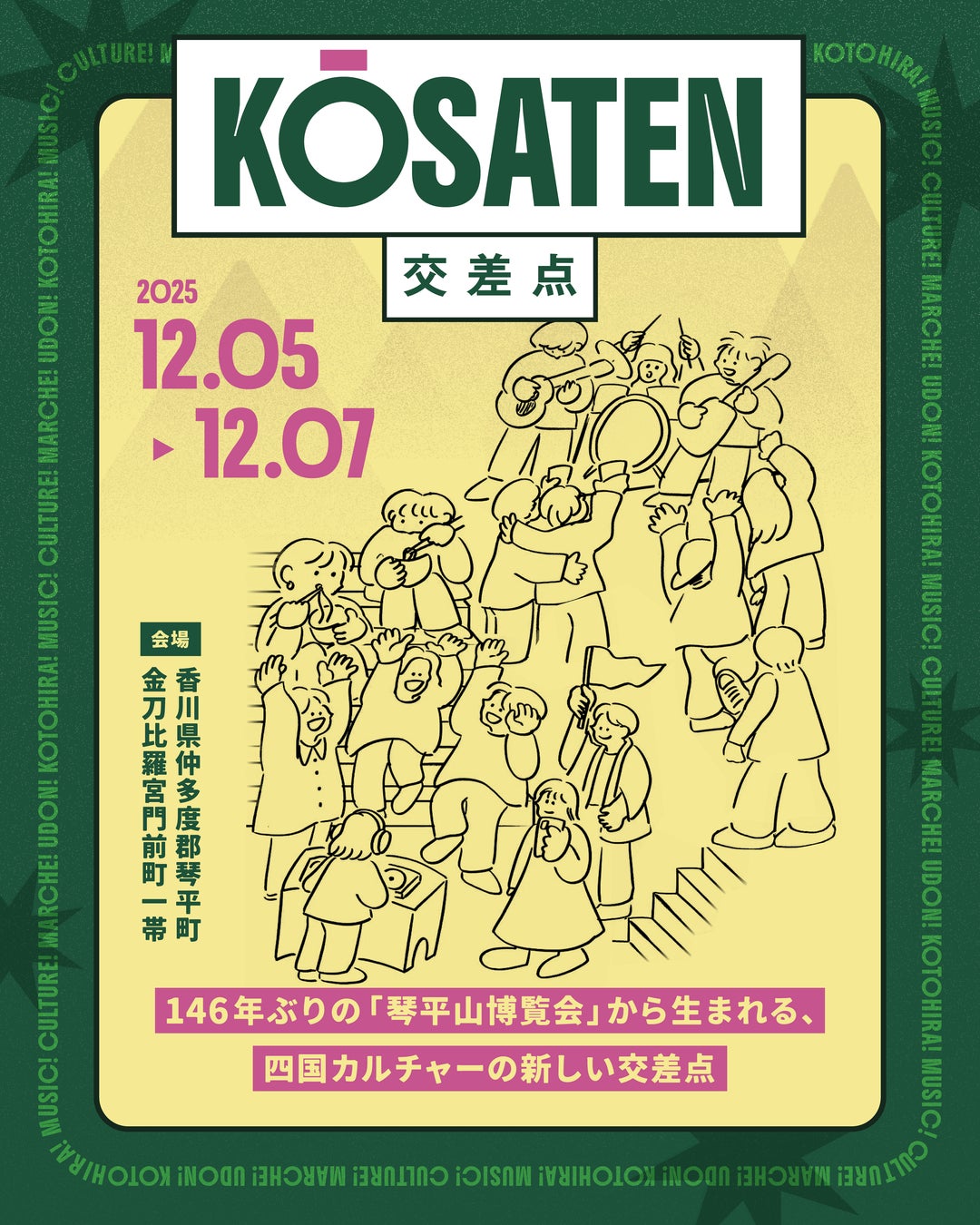 香川県琴平町・金刀比羅宮のふもとで、音楽・食・文化を交差させた新しい地域フェスティバル 「交差点 KŌSATEN」 を、2025年12月5日より7日の3日間初開催いたします。