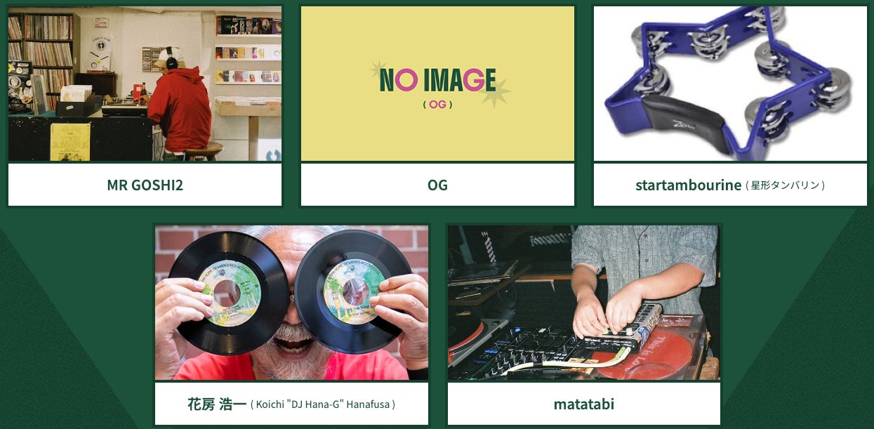関西発全国で活躍中のOG、startambourine(星形タンバリン)から、ジャーナリストなど多彩なキャリアを経て、フジロック・フェスティヴァルの創立メンバーを経てfujirockers.org主宰、日本全国のみならずUSからUKや台湾でも旋風を巻き起こすDJ稼業で話題の花房 浩一( Koichi "DJ Hana-G" Hanafusa )など歌謡曲から、ハウスミュージック、テクノ!!!