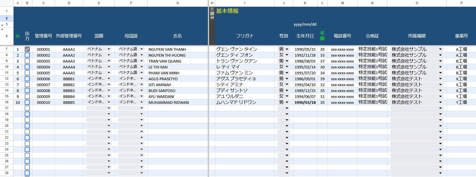 専用画面を覚える必要はありません。使い慣れたスプレッドシート形式で、Excel等からのコピペもスムーズ。データ移行や入力時間を大幅に短縮します。