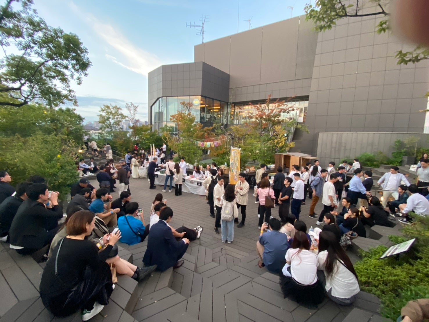 当日天候の心配をよそに、おかげさまで合っという間に開場が満員になるほどの大盛況で、約400名もの来場者のみなさんの笑顔と乾杯が、屋上庭園いっぱいに広がりました。