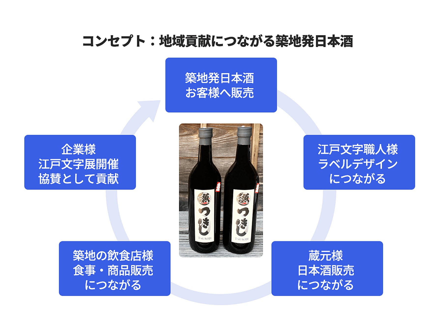 築地は、2018年に豊洲へと市場が移転し、今、新しい街として生まれ変わろうとしています。再開発によって変わっていく築地が、新しい魅力と共に、古き良き伝統も大切にする街であり続けるために、何かできることはないかと考えました。そして、たどり着いたのが、「江戸文字をラベルにした日本酒」です。