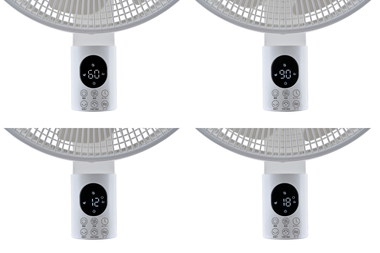 ・左右首振り:4段階角度調整(60°/90°/120°/180°)、速度2段階