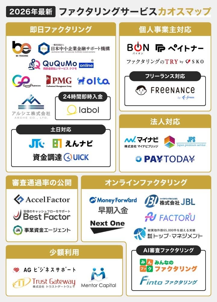 GrowthPartners(https://growth-partners.co.jp/)が運営を行うGrowthPartnersコラム(https://growth-partners.co.jp/list/)は、2026年度最新「ファクタリングサービスのカオスマップ」を制作・公開しました。