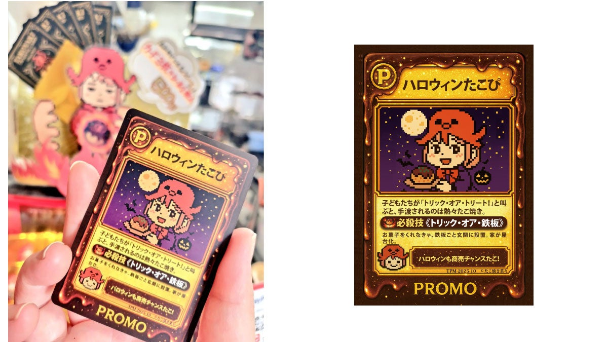 毎月変わるプロモカードの10月版はマント姿の《ハロウィンたこぴ》期間中に店舗またはBOOTH通販で購入した方に数量限定で配布され、コレクションの楽しみをさらに盛り上げます。