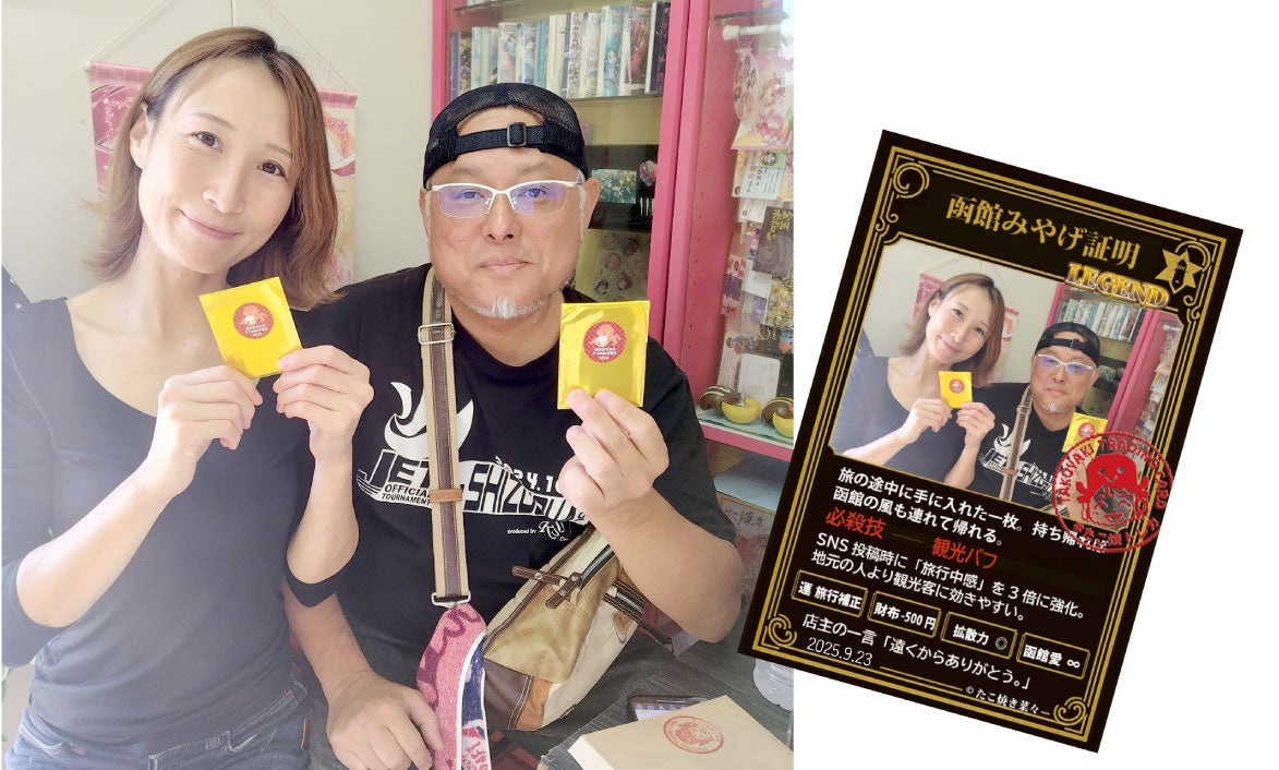 函館の店舗でカードを購入した方限定で来店記念に特製カードフレーム入り画像を作成しSNSに掲載。観光客にとっては、ただ買うだけではない“函館を訪れた証明書”として人気を集めています。
