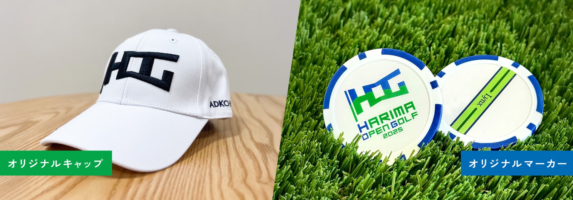 決勝当日11月3日(月・祝)は、正門入場ゲートにて午前7時より、来場者先着で「播磨オープンゴルフ2025」限定グッズをプレゼントいたします。大会ロゴをあしらったオリジナルキャップとマーカーは、本大会の記念としても貴重なアイテムです。ぜひこの機会にお受け取りください。