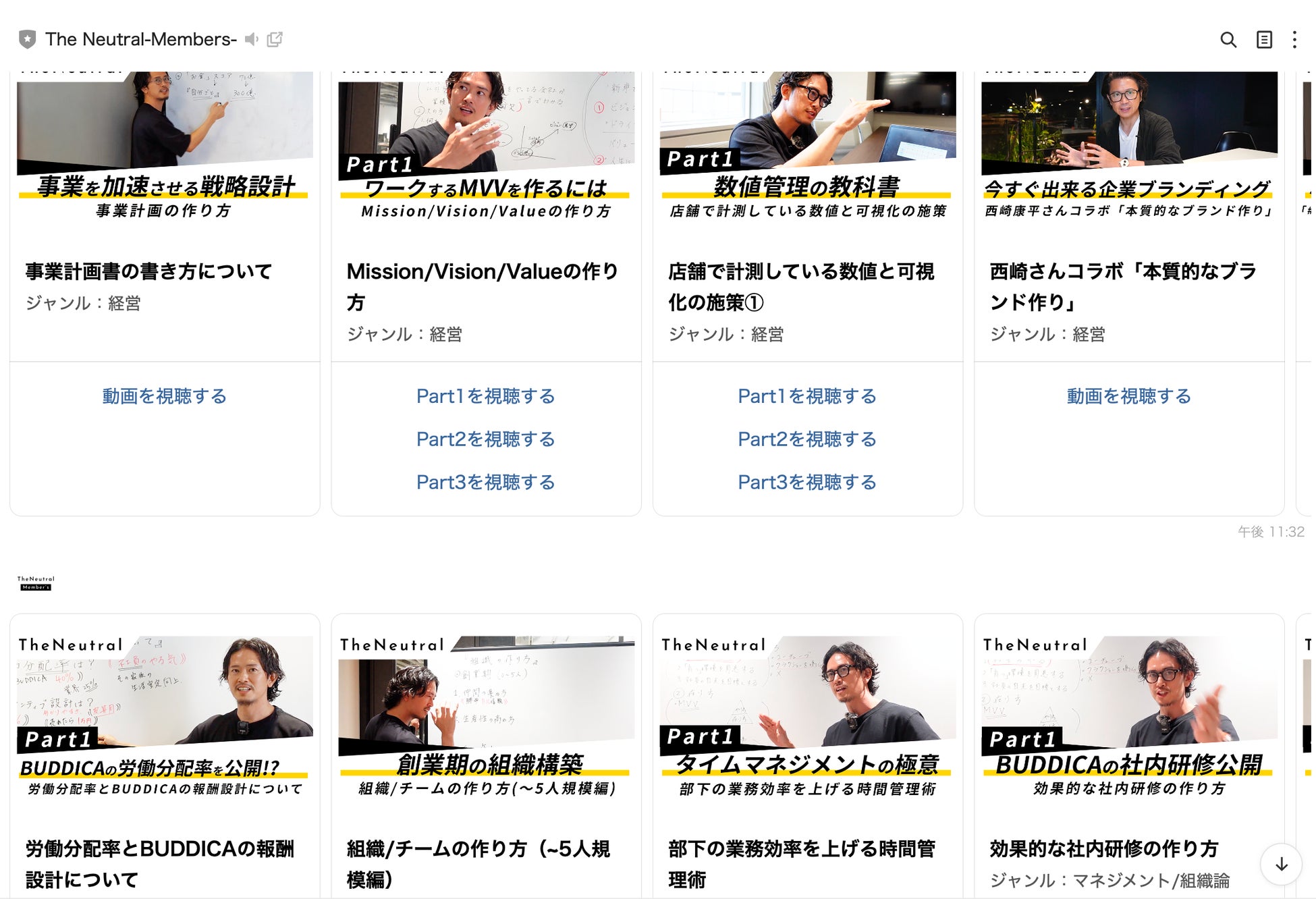 「評価制度とか報酬制度のようなニッチな経営の話って、YouTubeではなかなか紹介されてなかったんですけど、The Neutralに入ったら、それが動画で全部見れるようになってて驚きました。特に、CXOチームの作り方とか、経営幹部一人ひとりにミッションと役割を持たせる考え方はめちゃくちゃ参考になって、実際に自分の会社でも導入しました。組織図も作り直して、会社の伸び方も明らかに変わった実感があります。」