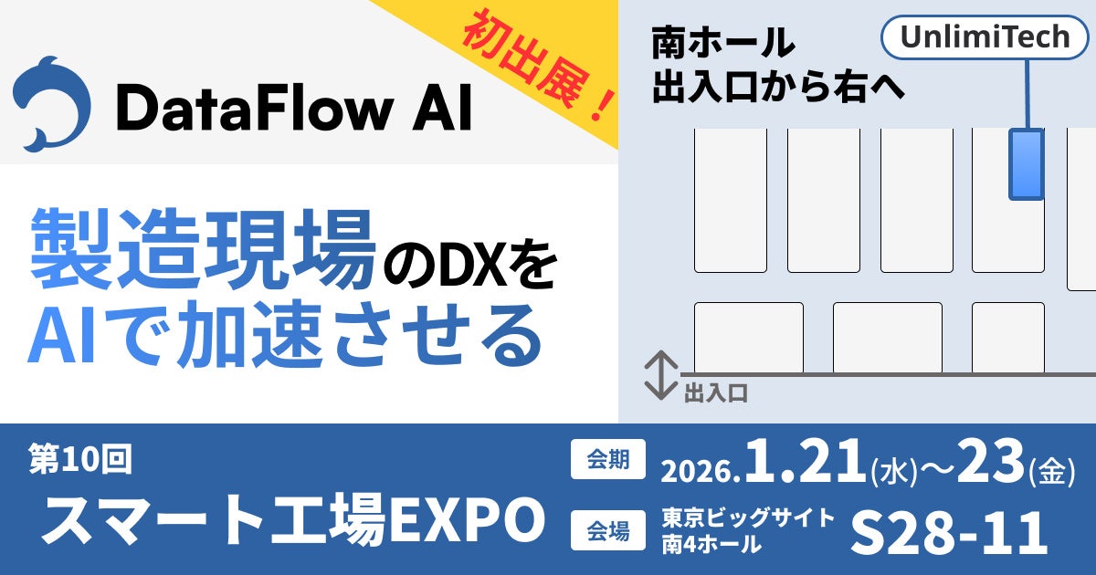 AIワークフローツールを提供するスタートアップ、株式会社UnlimiTech(本社:東京都港区、代表取締役:中川高之、以下「当社」)は、2026年1月21日(水)から23日(金)まで東京ビッグサイトで開催される「第10回 スマート工場 EXPO(ファクトリーイノベーションウィーク内)」に出展することをお知らせいたします。