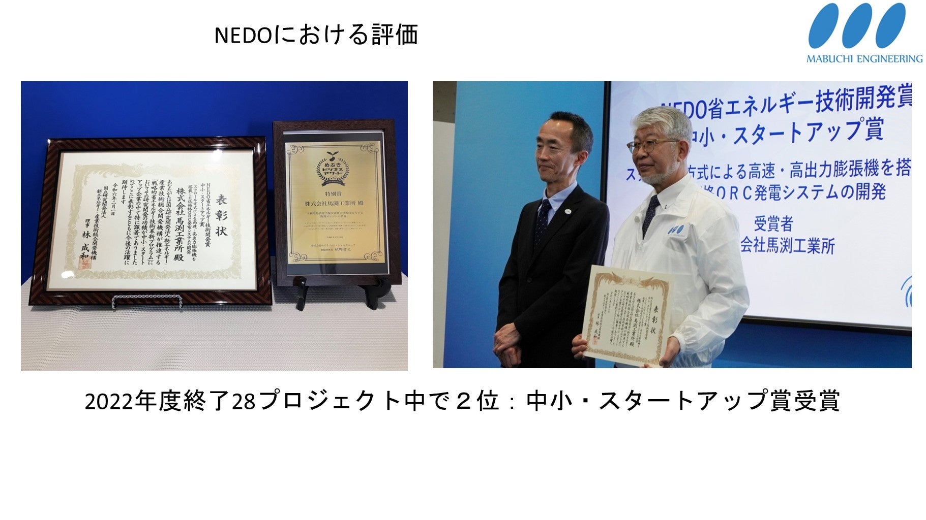 ・NEDOの戦略的省エネルギー技術革新プログラムに採択されており、東京大学生産技術研究所、宮城県産業技術総合センターなどと共同でプロジェクトを実施。最新技術を導入し、低価格かつ高出力なORC発電システムの研究開発を進めてまいりました。