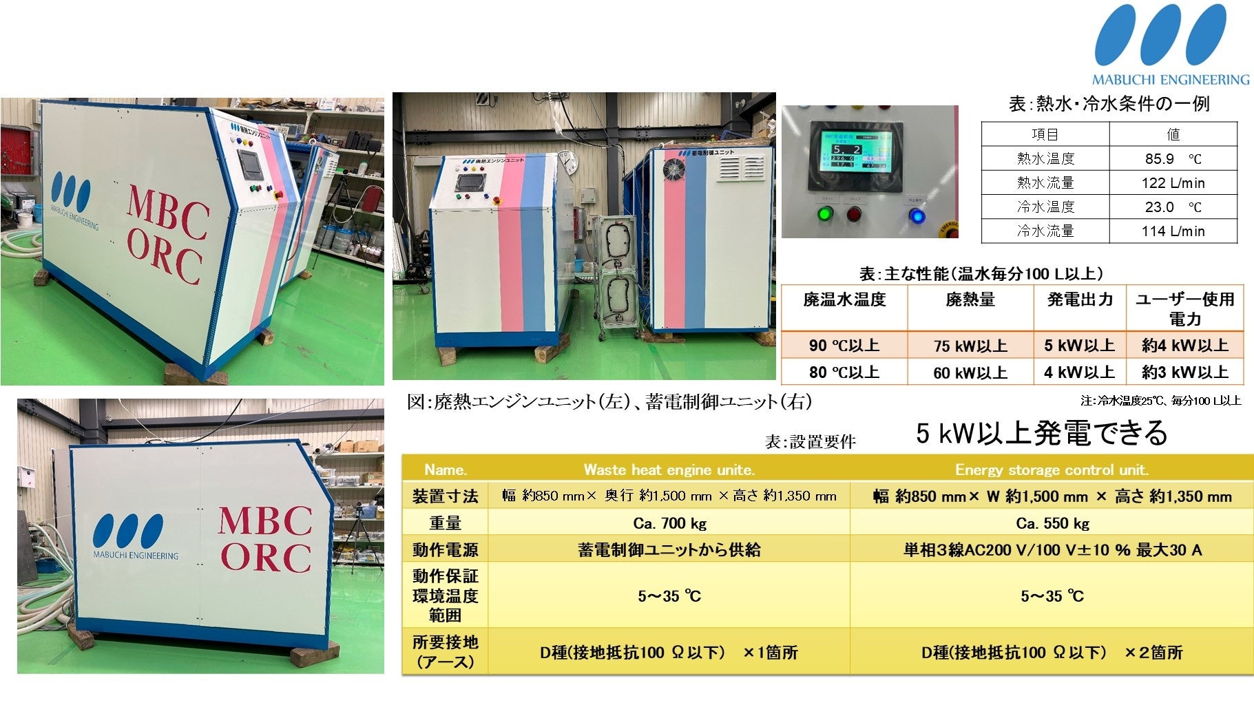 このたび、株式会社馬渕工業所(本社:仙台市/代表取締役 小野寿光/以下、当社)は、かねてより研究開発を推進してまいりましたORC発電システムの販売を開始いたしましたのでお知らせいたします。