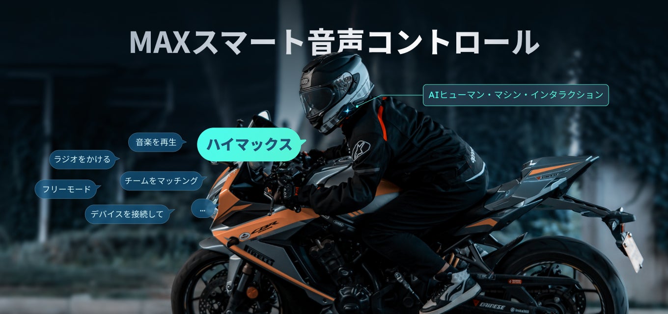 *業界初について:2024年6月、ASMAXの調査による。日本国内で販売されているバイク用インカムにおいて、実際の人間による音声録音と訓練を採用した音声認識システムとして。