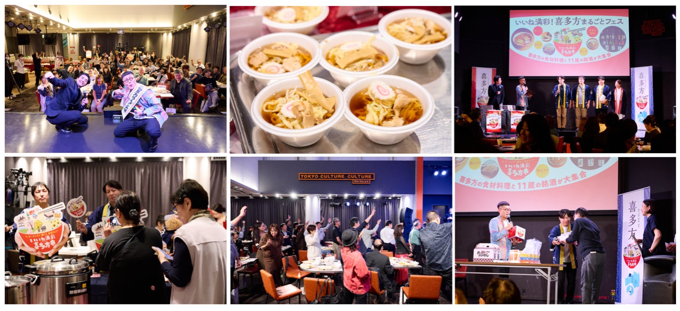 イベントでは、喜多方ラーメンや山都そば、塩川鳥モツをはじめ、地元の特産品を堪能できるビュッフェ形式の食事や、喜多方の日本酒、さらには豪華賞品が当たるクイズや抽選会も実施。参加者の熱気と笑顔で会場は終始盛り上がりました。