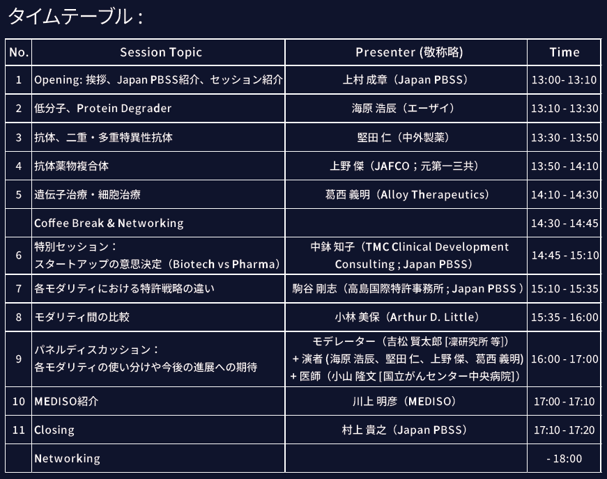 - テーマ:「がんを対象にした医薬品の研究開発におけるモダリティ戦略」