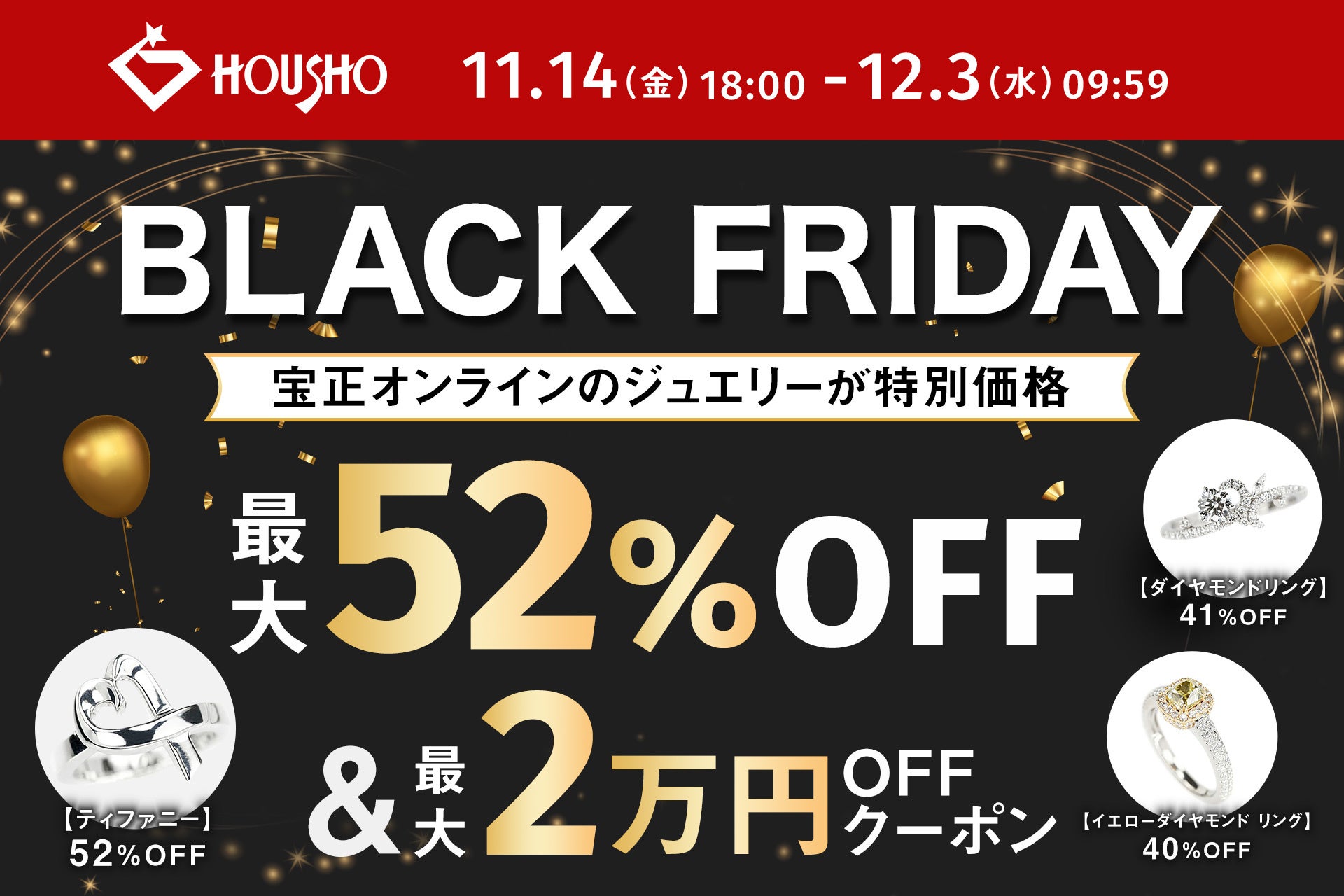 高品質なダイヤモンド・真珠など中古ジュエリーを取り扱う株式会社宝正(ホウショウ)は、公式オンラインショップ「宝正オンライン」にて、2025年11月14日(金)よりブラックフライデーセールを開催します。
