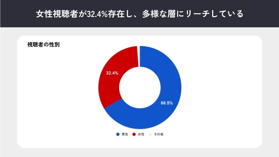 一言サマリー:女性視聴者が32.4%存在し、多様な層にリーチしている