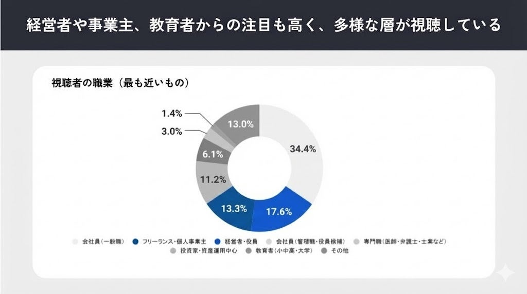 一言サマリー:経営者や事業主、教育者からの注目も高く、多様な層が視聴している